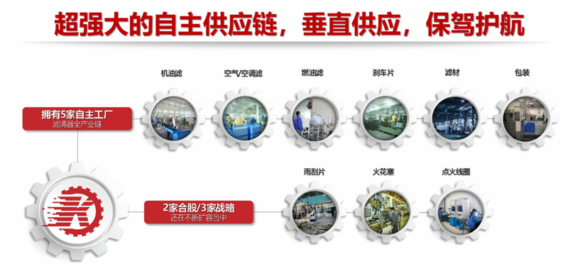 客天下旗下拥有5家自主工厂,包括了滤清器的全产业链,还有2家合股工厂,3家战略工厂,并且现在还在不断的扩容当中!通过供应链的高度聚合,打造更有力度的价格优势,对于终端来说更加具有价格优势和吸引力!